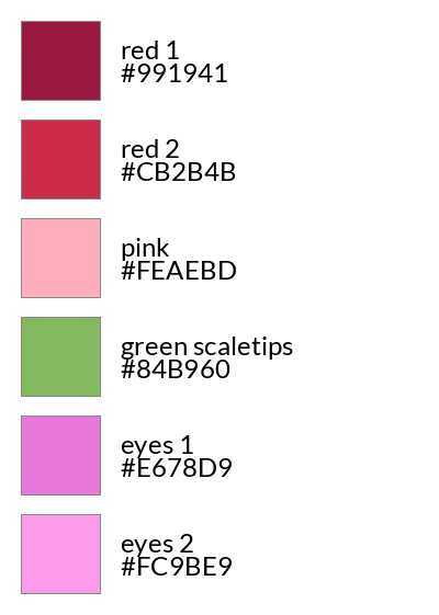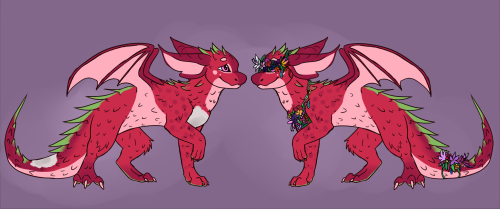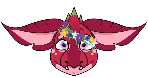 Juniper is a lychee/dragonfruit fruit dragon with a relatively rare condition where patches of his scales never grew. He has low self-esteem and is afraid of anyone seeing his face or scaleless skin, and as a result, chooses to veil his face and skin patches with flowers.